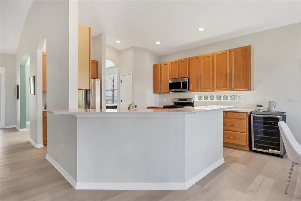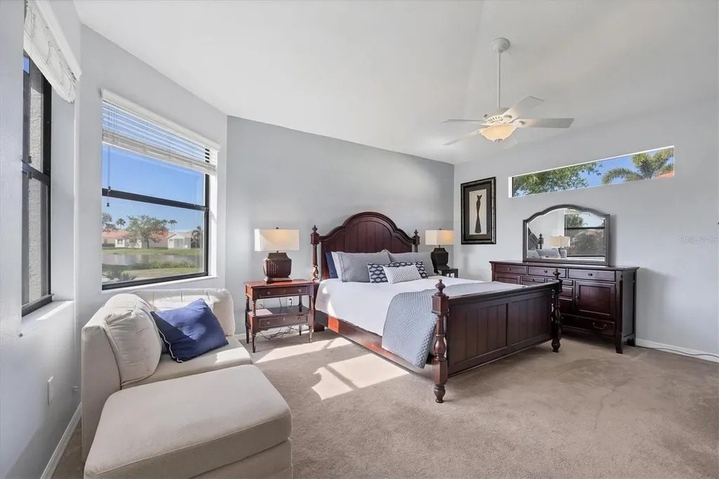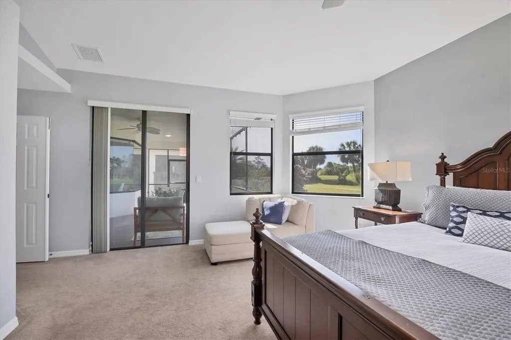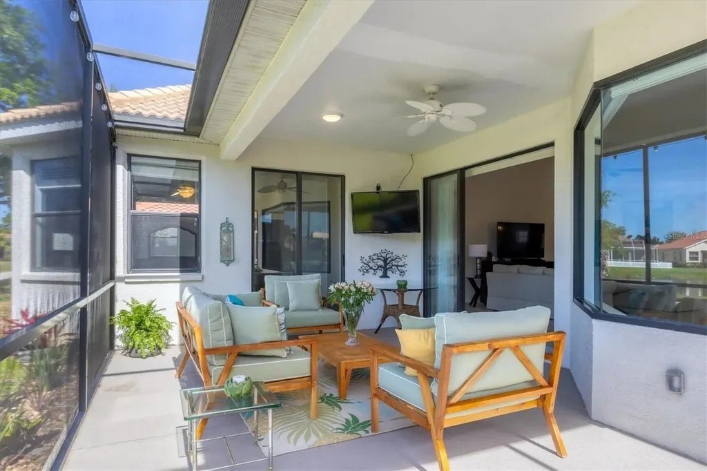 Welcome to The Preserve at Tara, where scenic beauty meets refined living. Set against sweeping lake and golf course views, this beautifully updated home delivers an exceptional blend of elegance, comfort, and tranquility. Lush landscaping creates a warm first impression, guiding you to an extended screened lanai-an ideal space to unwind while enjoying the peaceful surroundings. Inside, the thoughtfully designed kitchen will impress even the most discerning chef, featuring a natural gas range, quartz countertops, breakfast bar, pantry, and a striking aquarium window that perfectly frames the outdoor scenery. Adjacent to the kitchen, the formal dining room is bathed in natural light from expansive windows, creating an inviting space for entertaining. The great room is truly stunning, highlighted by soaring 14-foot ceilings, graceful archways, rounded wall corners, and sliding glass doors that open seamlessly to the lanai for effortless indoor-outdoor living. The spacious primary suite serves as a private retreat, offering a cozy seating area, walk-in and built-in closets, and direct access to the lanai. The spa-like primary bath features dual vanities, a walk-in shower, and a separate soaking tub. Two additional bedrooms offer high ceilings and generous closet space, while the guest bath is updated with a quartz countertop and a tub/shower combination. Throughout the home, you'll find tasteful upgrades including tile, luxury vinyl plank, and carpet flooring, ceiling fans in every room, and a recently updated HVAC system (2024). Practicality meets convenience with a two-car garage and modern appliances, including a gas range (2021), microwave (2021), water heater (2021), and dishwasher (2022). Residents of The Preserve at Tara enjoy access to community amenities such as tennis courts, pickleball, and a resort-style pool and spa. Golf enthusiasts can take advantage of optional membership or pay-as-you-play access to The Preserve Golf Club, featuring a Ted McAnlis Signature course designed to harmonize with Florida's natural wetlands. Ideally situated, this home provides effortless access to the Gulf Coast's finest attractions-world-famous beaches, Downtown Sarasota, Lakewood Ranch, Waterside Place, and University Town Center Mall-all just minutes away. Convenient proximity to I-75, shopping, dining, and entertainment are always within easy reach.